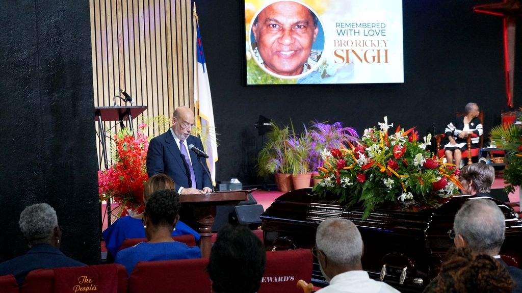 Former Guyanese diplomat and former Secretary-General of the African, Caribbean and Pacific (ACP) Group of States, Dr P.I. Gomes joined in paying tribute to Singh during the church service.