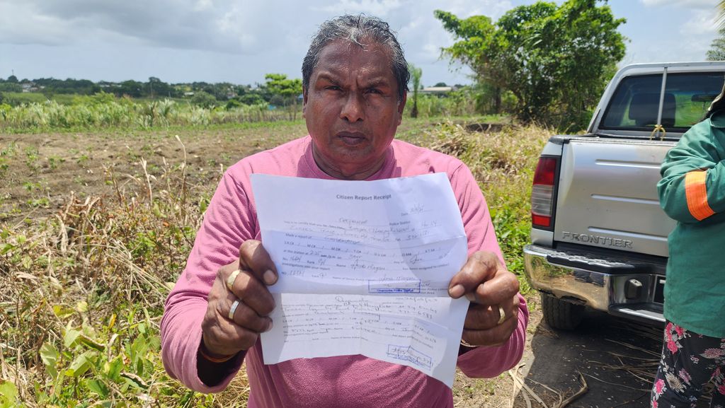The farm­ers, who cul­ti­vate over 25 acres of land, are call­ing on Agri­cul­ture Min­is­ter Ravi Rati­ram to in­ter­vene af­ter re­peat­ed com­plaints to po­lice and the Prae­di­al Lar­ce­ny Squad brought no re­sults.