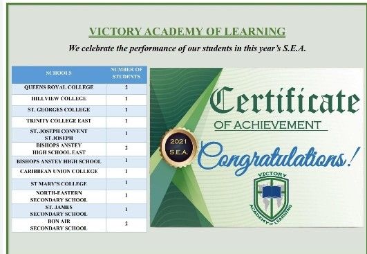 In this year’s exam, VAL had two students each placed at Queen’s Royal College, Bishop Anstey High School East, Bon Air Secondary.