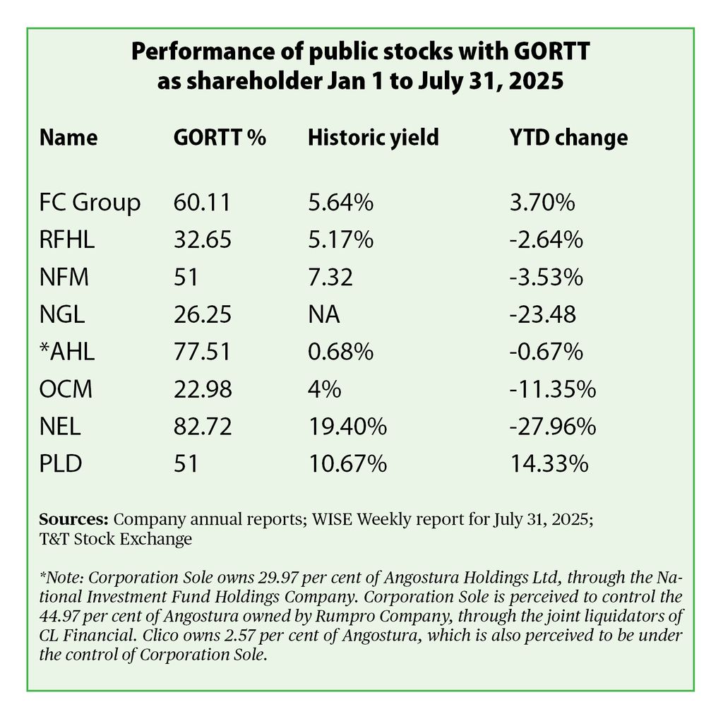Six of the eight stocks on the TTSE that the State owns shares in have declined year to date. A significant aspect could of that decline could be that the stock markets, as a whole, have been in decline for the first seven months 2025...and the three years preceeding.