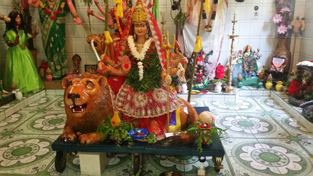 Maa Kaal Ratri, who is also Kali Maa, is the goddess who is normally worshipped at Yogesh’s temple in South Oropouche. Since Maa Kaal Ratri is the seventh form of Maa Durga, the spiritual leader saw it fit to conduct puja and scriptural readings for the nine nights.