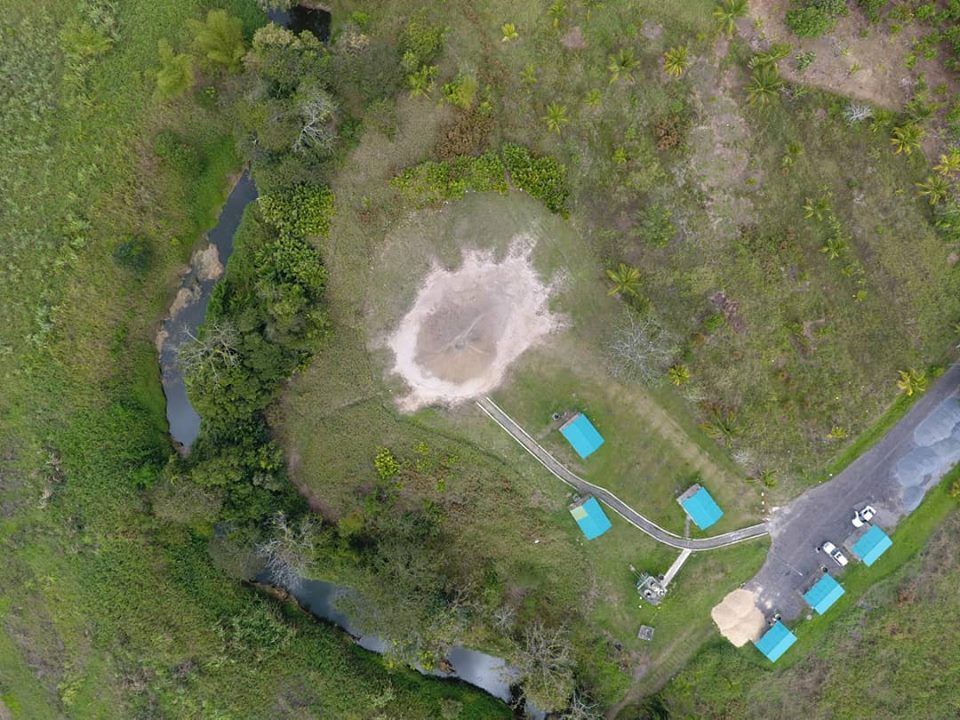 Moonan said the Digity Mud Volcano was one of two mud volcanoes which occur atop the Penal Barrakpore Anticlinal trend. The other is volcano is Devil's Woodyard.