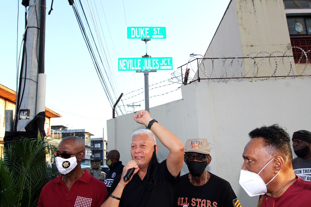 He was speaking at the formal ceremony for the renaming of the corner of George and Duke Streets to the Neville Jules Junction, at the Trinidad All Stars Steel Orchestra’s panyard.