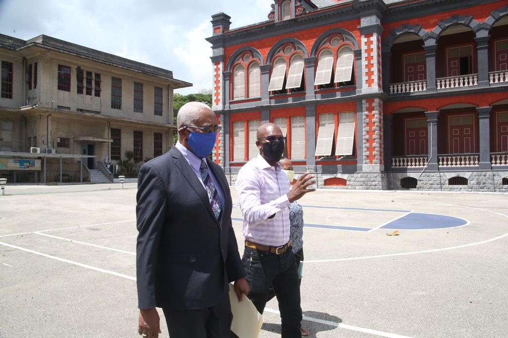 During a tour of Queen’s Royal College (QRC) yesterday, Minister of Education Anthony Garcia was shown a couple of classrooms with spaced-out desks, while principal David Simon also confirmed the school’s gymnasium had been transformed to accommodate CSEC/CAPE examination students.