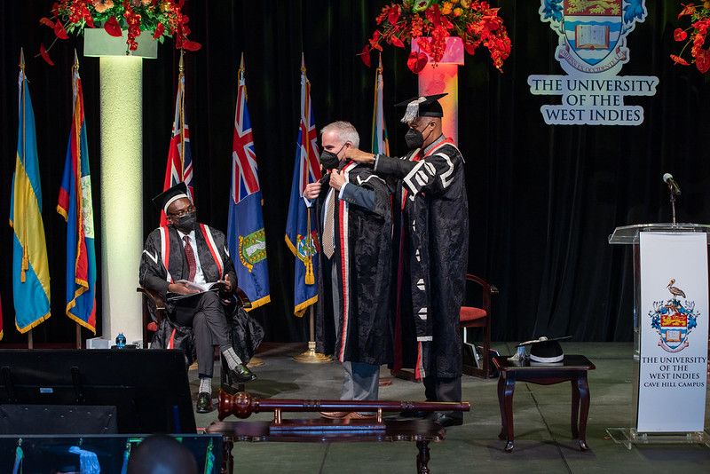 “We are proud of his record of achievement and commitment. We respect him, we admire him, and we salute him on this day. He is a man of the moment, there is no doubt. He possesses all the relevant skillsets to lead this distinguished Campus. Not only is he competent, but his consciousness will enable his dramatic impact upon the leadership of the Campus and this University. I am confident that Cave Hill will continue to thrive under his leadership because we know of his judgment, we know of his temperament and, critically, we are comforted by his impulse for social justice.”